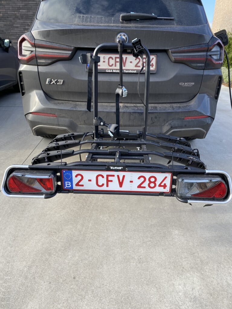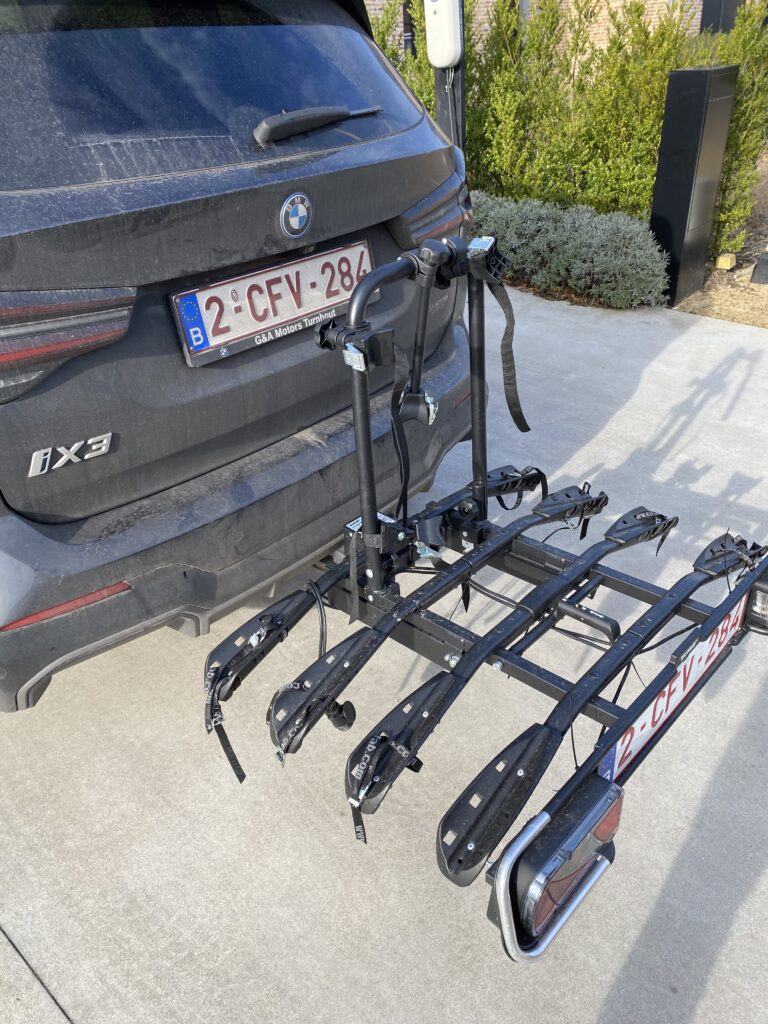 Deze fietsendrager is gemakkelijk te monteren. Je kan je eigen nummerplaat erop zetten. Er passen vier fietsen op