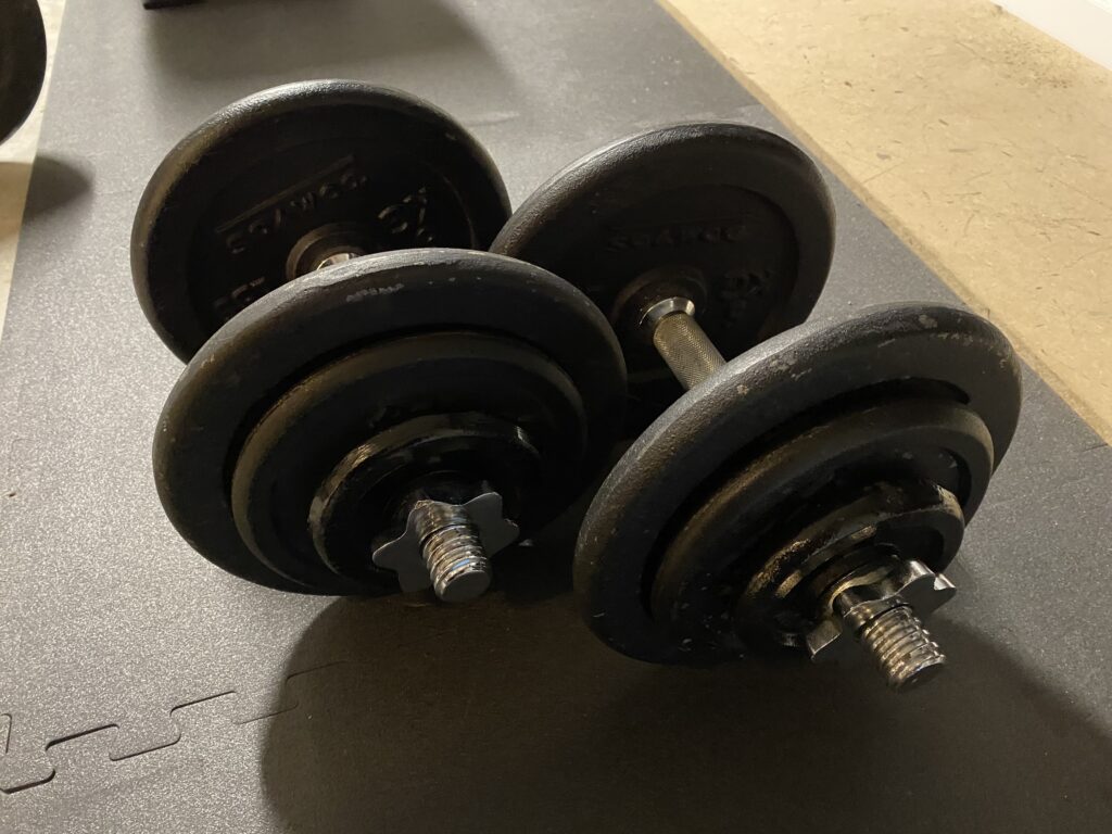 Fitness bank en gewichten